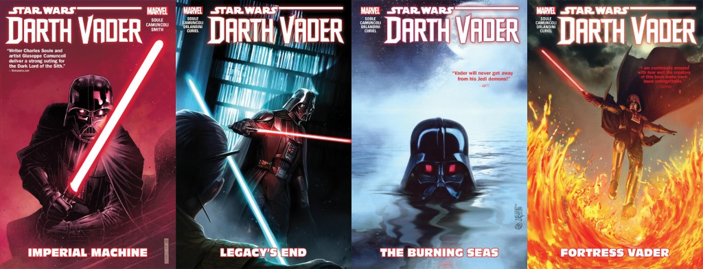Next, I read the 4 collected volumes of Star Wars: Darth Vader: Dark Lord of the Sith by Charles Soule & Giuseppe Camucoli. I borrowed these digitally from the library through the Hoopla app and read them on my tablet. These were a breath of fresh air, as I feel like I’ve been steeped in medieval fantasy and all the associated tropes for so long. This comic run deals with events immediately after Anakin Skywalker becomes Darth Vader (spoiler!). The thing I like about “side stories” in the Star Wars universe is that we get a lot of minutiae that gets glossed over in the movies and some of the bigger TV shows. There are planets, cultures, and characters that we get to explore in more depth. We get more character development of Darth Vader himself, which actually adds a bit of nuance to a man who kills first and never asks questions later. If your library system has comics, I’d suggest going this route. Bonus points if you have a tablet and can read them digitally. If you have it in your budget, you can buy the paperbacks for each of the four volumes for ~$19 each at Bookshop.org. Don’t use the devil book website if you don’t have to. You know which one I’m talking about.
