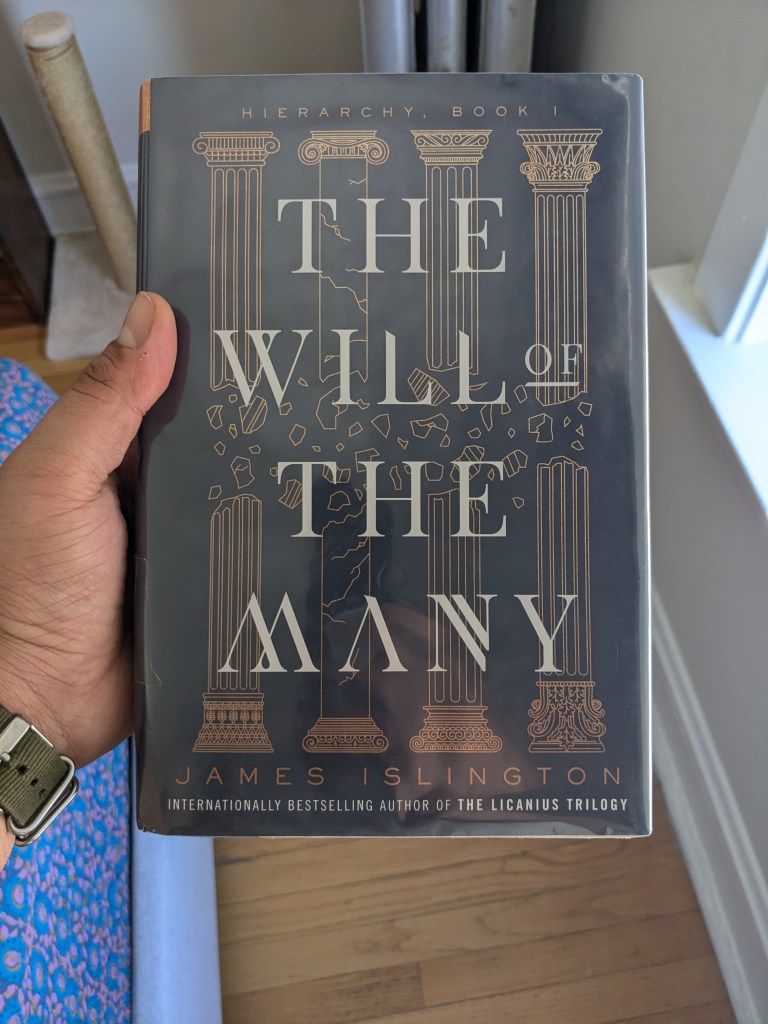 I finished The Will of the Many by James Islington. This is the first book in his Hierarchy series, the second of which is coming out this November. We follow Vis, a former prince whose homeland was colonized by the Hierarchy. He gets roped into a conspiracy that has broad implications for the world. The magic system in this book is unique, as people who are lower class (or lower on the pyramid) have to cede will to those higher up in society. It’s a pretty in your face metaphor for capitalism, which is always fun to read.