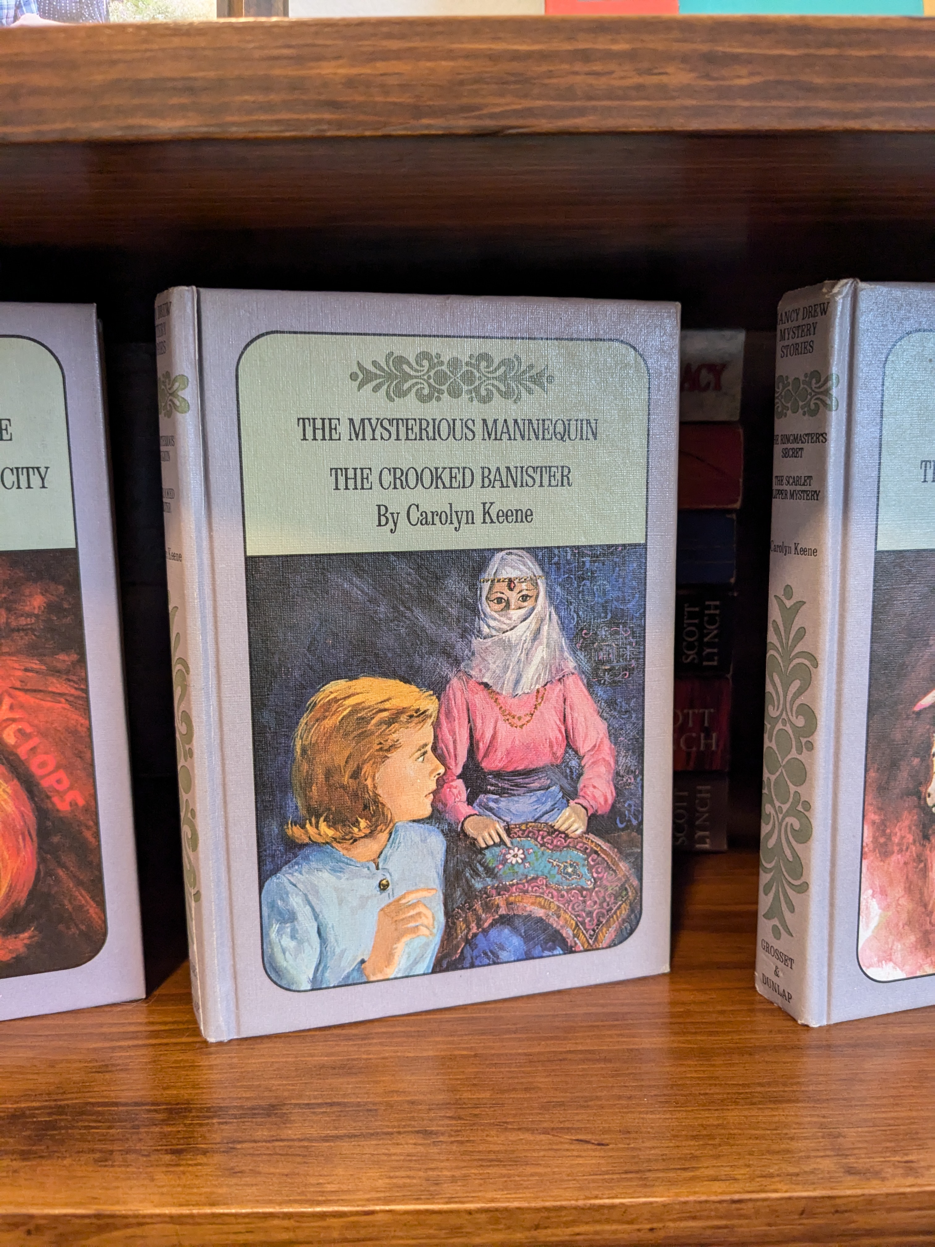 I squeezed in The Crooked Banister by Carolyn Keene, the second Nancy Drew mystery in the double-feature book I read a few weeks ago. This one was better than The Mysterious Mannequin, but only marginally. I know these are meant for kids, and they are pretty simple, but I usually find the mysteries exciting at least. This one took place pretty much in one location for most of the book, and there wasn’t really a mystery, only a criminal on the lam. It’s okay though, this book only took a single day to read.