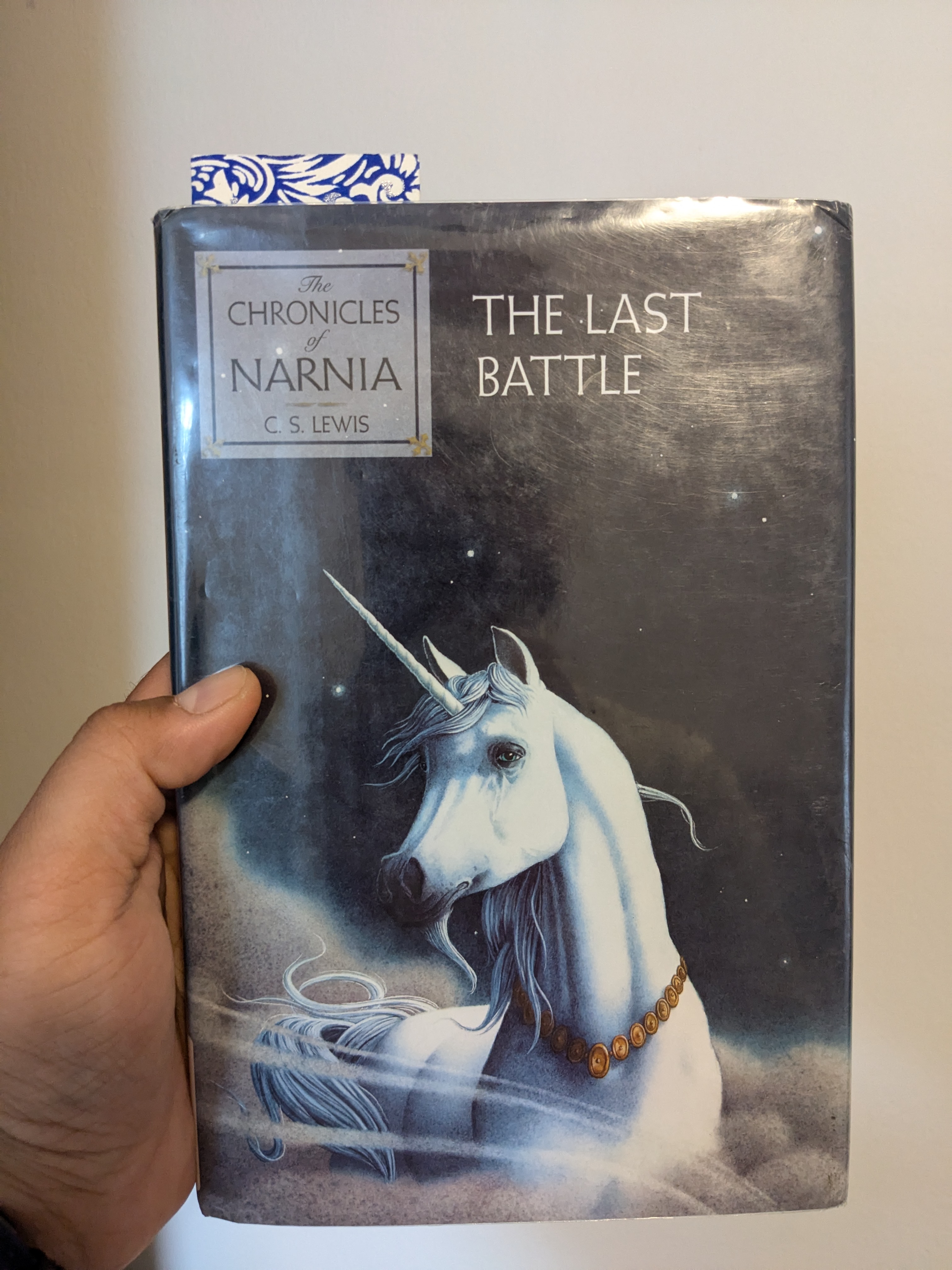 I finished The Last Battle by CS Lewis, thus ending my journey with The Chronicles of Narnia. While I enjoyed this story, I confess that this final volume didn’t dazzle me as much as the other books in the series. It was a fitting end, with characters from earlier in the series entering Narnia again one last time. One thing I liked was how quickly the animals and people of Narnia quickly followed a false Aslan, even though this imposter was doing horrible things that were against everything they knew about the great lion. I would have called it unbelievable that so many people can be so easily duped by a false leader, but the last few years have taught me otherwise. Other than that, the actual final battle itself felt rushed, and I think this book could have been a little longer to suit the finality of the story.